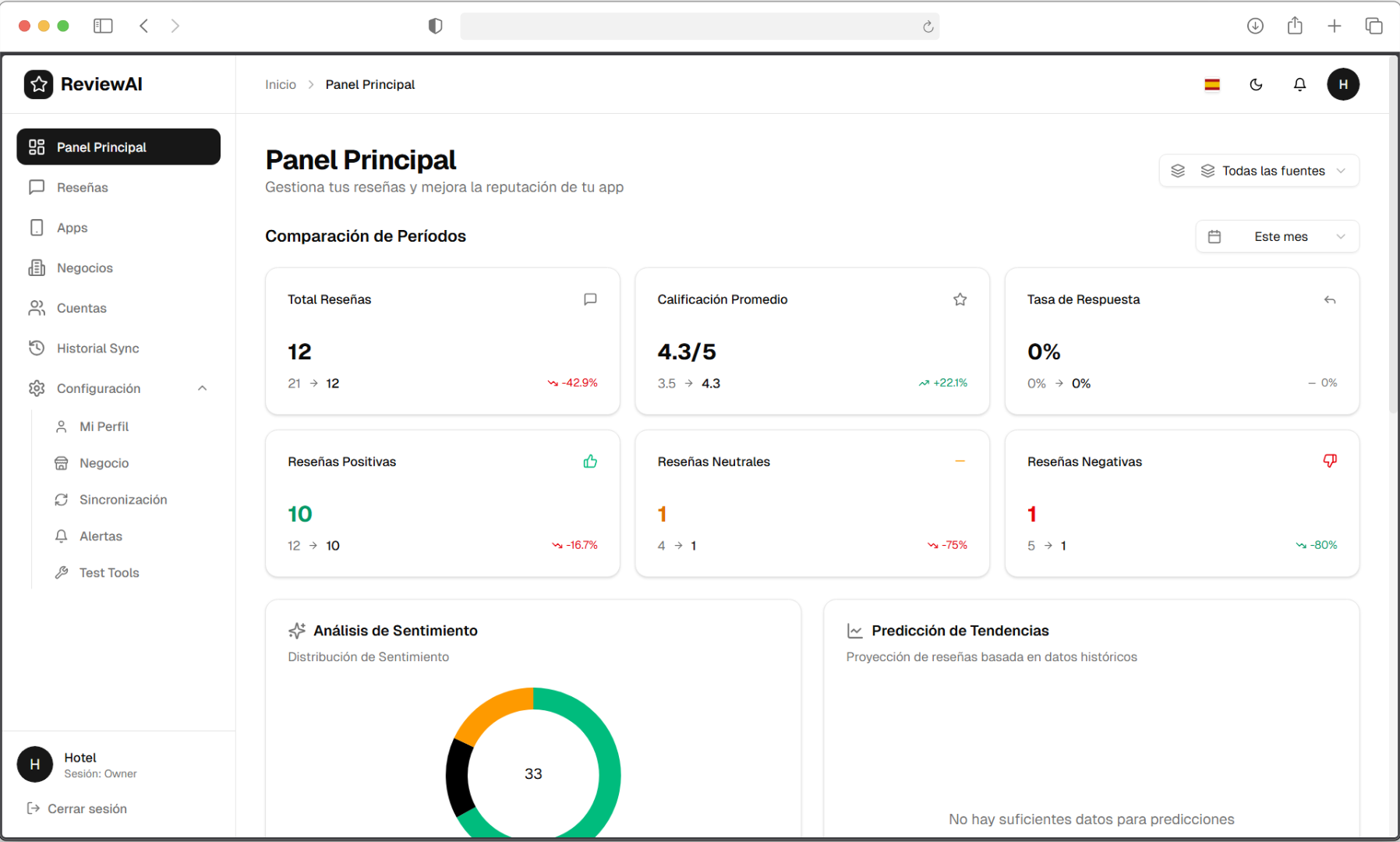 "ReviewAI nos ha ahorrado horas cada semana. Las respuestas son naturales y nuestros clientes notan la diferencia."